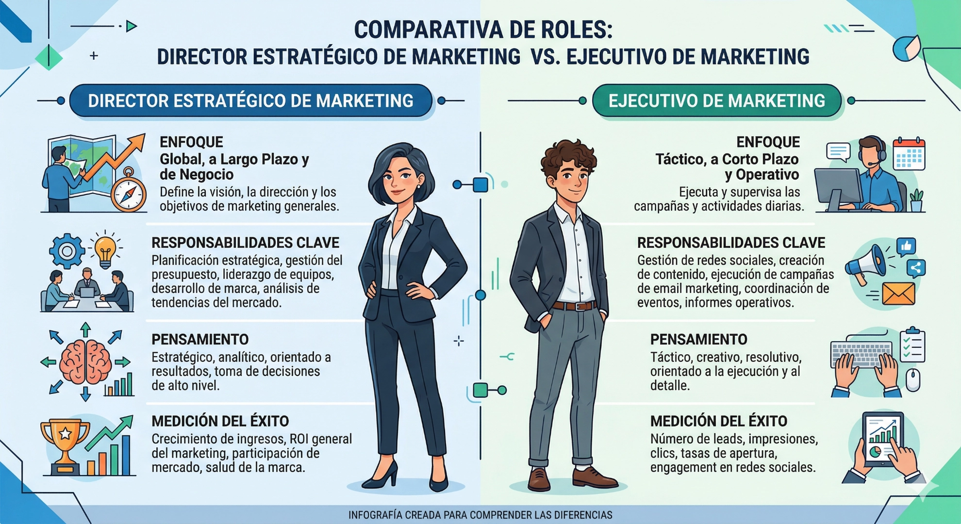 Director Estratégico de Marketing vs. Ejecutivo de Marketing: ¿Cuál es la diferencia real?